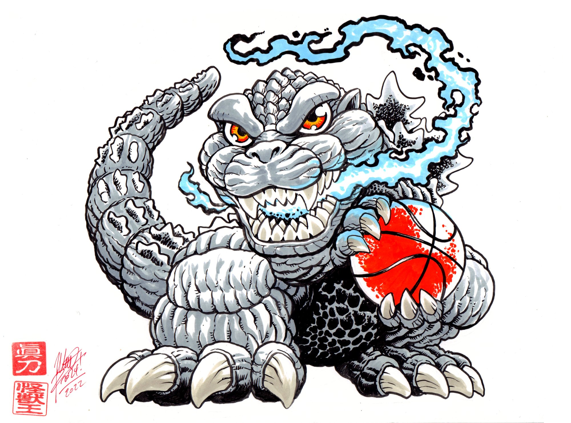 Godzilla Basketball (Super Deformed) T-Shirt Artwork