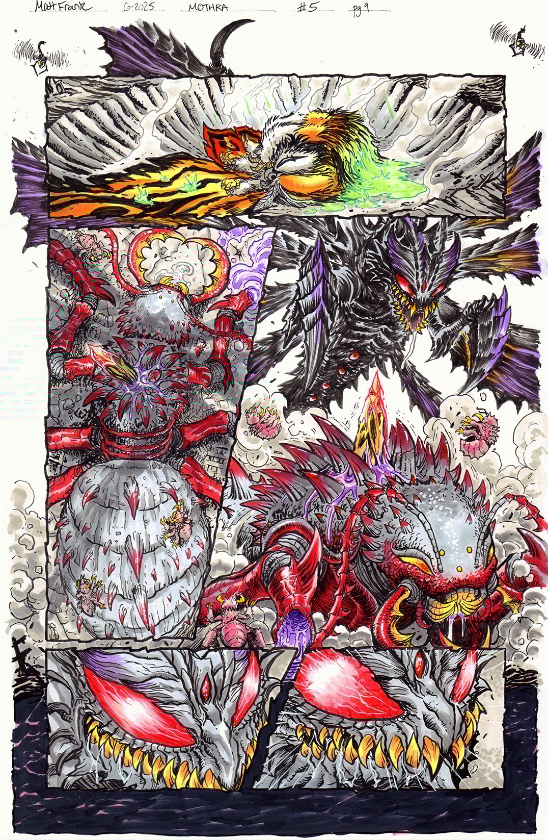 We are thrilled to offer 20 original comic book pages from Mothra: Queen of the Monsters Issue #5 โ the first-ever solo comic series starring Mothra herself, brought to life by artist Matt Frank and written by Sophie Campbell with physical colors by Roberto Rivera Padro and Matt Frank!