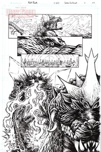 Own a piece of history! Dive into the heart-pounding world of Godzilla like never before with the opportunity to claim the ultimate prize: the original inked page from the electrifying one-shot "Space Godzilla" from issue #1, page #23!