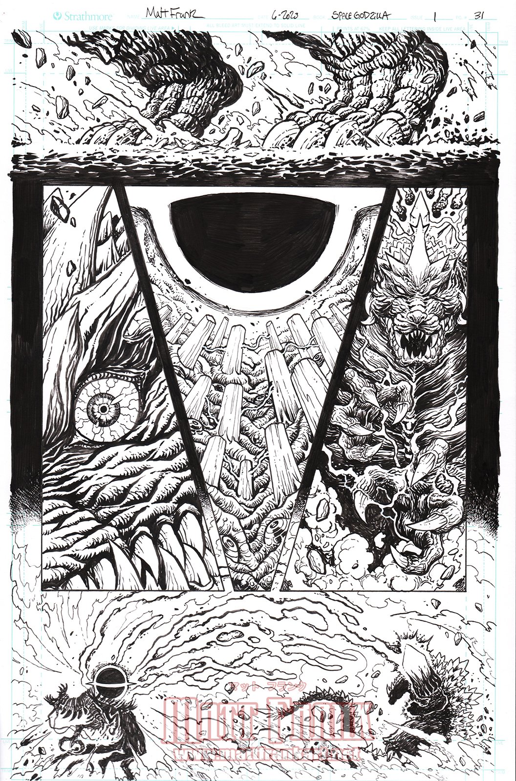 Own a piece of history! Dive into the heart-pounding world of Godzilla like never before with the opportunity to claim the ultimate prize: the original inked page from the electrifying one-shot "Space Godzilla" from issue #1, page #31!